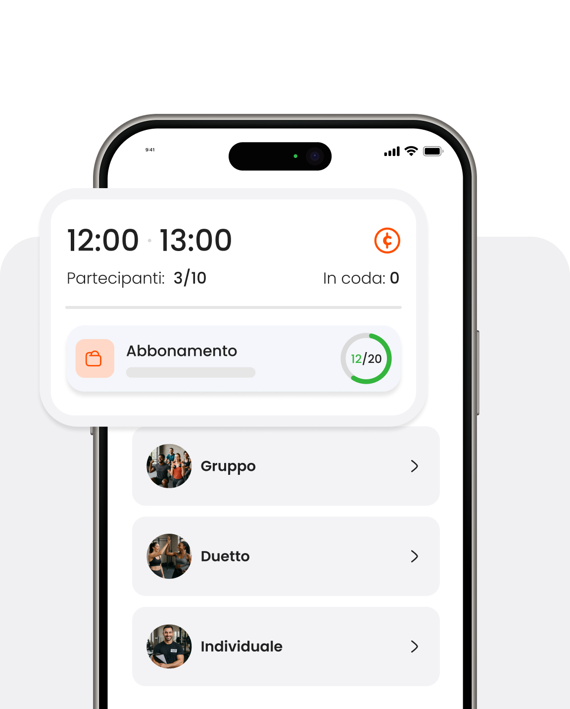 Mostra ai tuoi clienti quali trainer sono disponibili e dagli la possibilità di scegliere con chi prenotare la propria lezione di personal training.